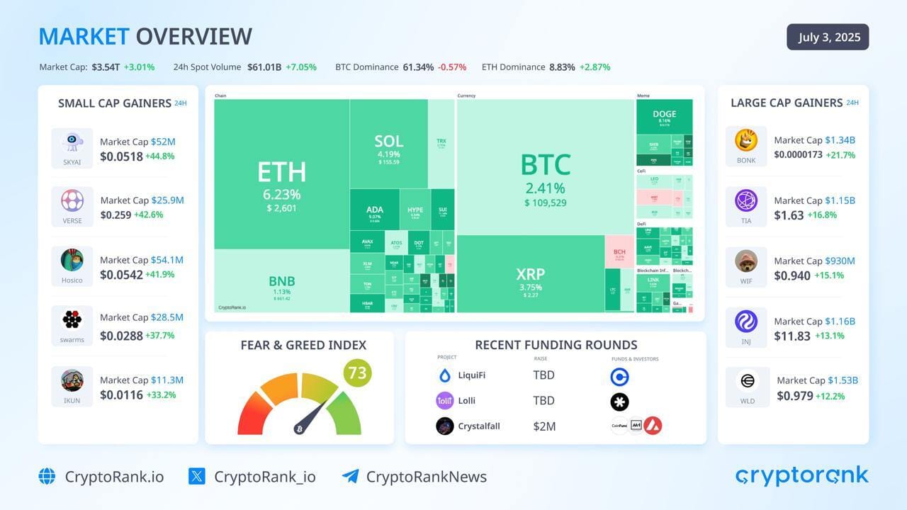 ![]() Source: Crypto News | Solana Staking ETF Goes LiveJul 3 (CryptoNews) — REX-Osprey launches Solana staking ETF. TradFi bets on staking rewards. |